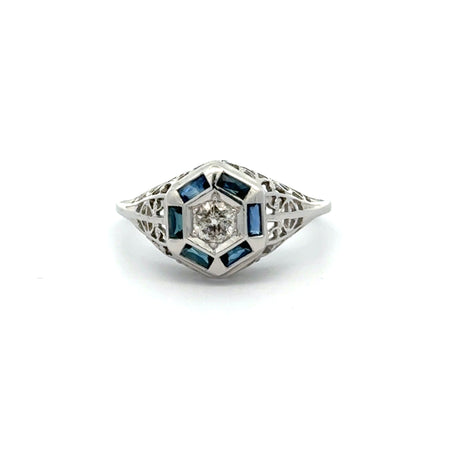 Art Deco Old European Cut Diamond Ring with Blue Sapphires in 14k White Gold $560.00 Art Deco Old European Cut Diamond Ring with Blue Sapphires in 14k White Gold $560.00 | / This item is a recurring or deferred purchase. By continuing, I agree to the cancellation policy and authorize you to charge my payment method at the prices, frequency and dates listed on this page until my order is fulfilled or I cancel, if permitted.